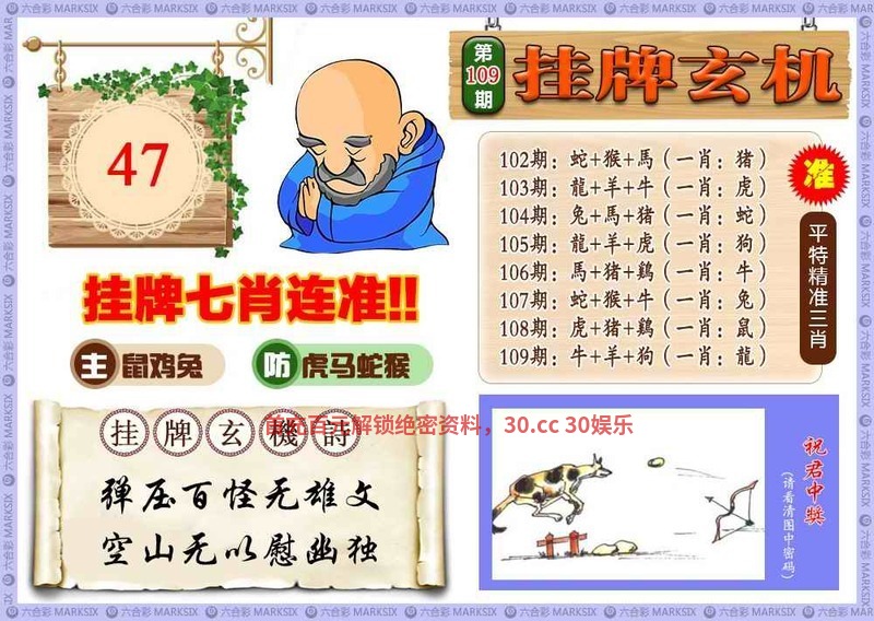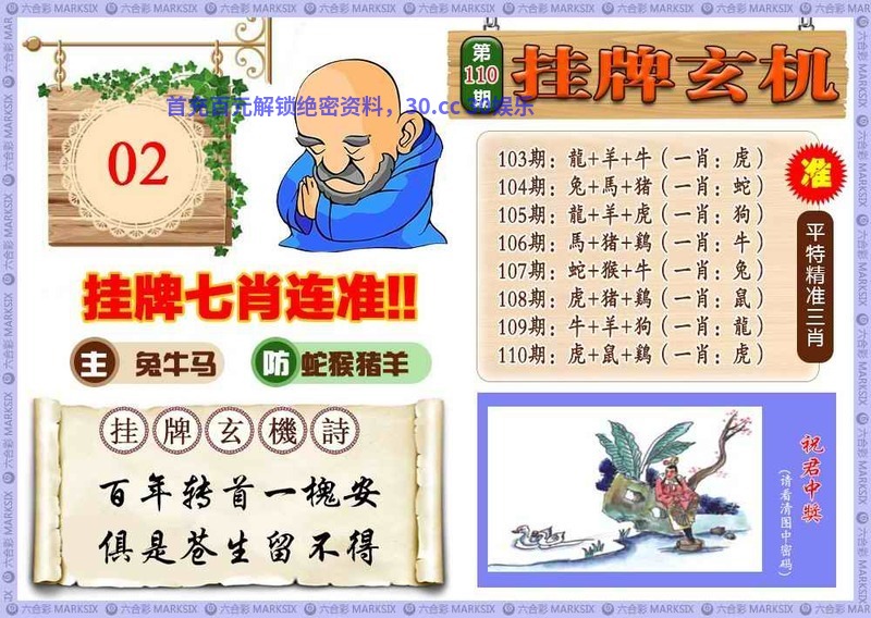 110期港彩关门联:四六一八话你知,兔虎牛鼠是特码。解 [知] [2753]